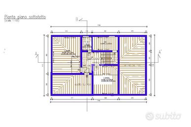 Composta da: al piano terra soggiorno, cucina, bagno, lavanderia e cantina. Al piano 1°: 3 camere da letto e bagno. Sottotetto al 2° ed ultimo piano.