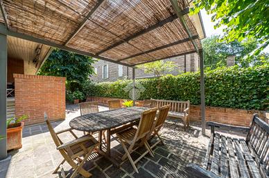 La proprietà si completa con il piano interrato, che include una taverna con servizi e un ampio garage, oltre alla mansarda pluriuso. Il giardino perimetrale, curato nei dettagli, offre un angolo pergolato ideale per momenti di relax e convivialità.