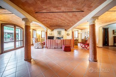 Completa l'unità un basso comodo, che ospita le autorimesse, una tettoia per il ricovero attrezzi e diversi locali adibiti a cantine e ripostiglio.