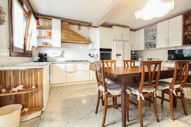 Al piano seminterrato si trova una taverna con cucina, ideale per momenti conviviali o come spazio di relax indipendente.