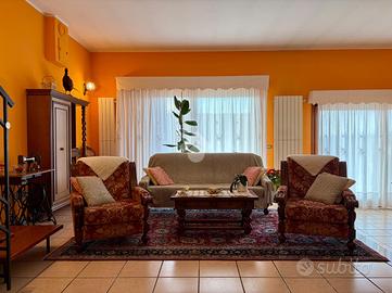 Al piano interrato troviamo una taverna di ampia metratura con camino, perfetta per momenti conviviali, oltre a un ulteriore bagno, una lavanderia e una cantina di circa 40 mq, spazi accessori che rendono la casa particolarmente funzionale.