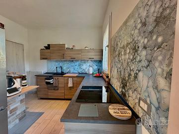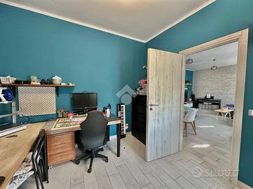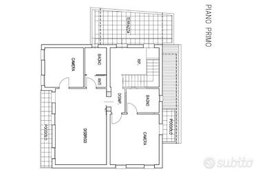 Salendo tramite la scala interna abbiamo accesso al piano primo composto da ingresso, soggiorno, cucina separata dalla quale abbiamo acesso ad un bellissimo terrazzo abitabile, bagno finestrato con doccia e due camere matrimoniali di cui una con bagno privato.