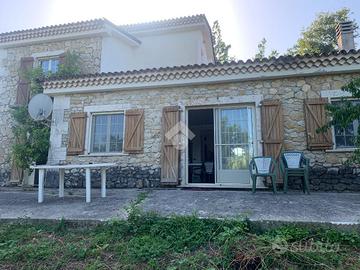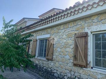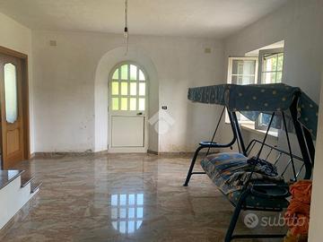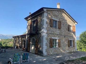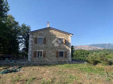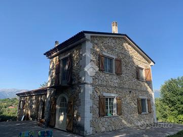 Casalvieri, Via Spina, in contesto riservato e panoramico proponiamo in vendita villa in pietra composta da un piano sottostrada destinato a triplo garage e cantina, piano terra che forma la zona giorno, con ingresso, cucina abitabile, doppio salone e bagno e piano primo composto da tre camere e bagno.