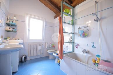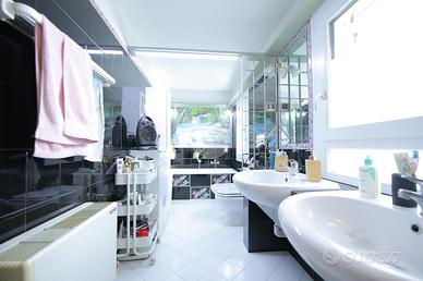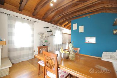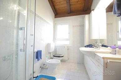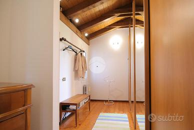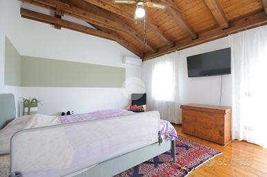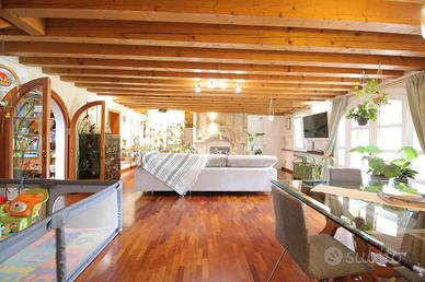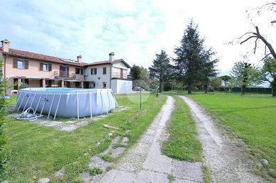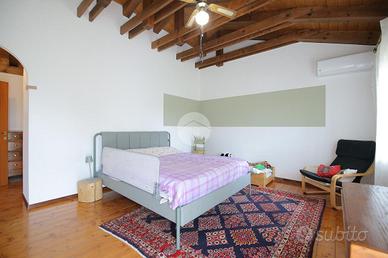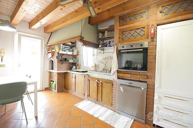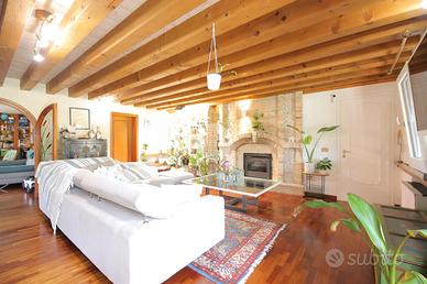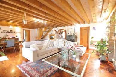 L'agenzia Tecnorete di San Trovaso propone in vendita a Dosson una prestigiosa villa singola, già suddivisa in due unità abitative, circondata da un ampio scoperto privato di circa 2.000 mq. Si tratta di una soluzione risalente ai primi del '900, completamente ristrutturata, che unisce il fascino dell'epoca al comfort moderno. L'unità principale si sviluppa su due livelli e accoglie al piano terra con un importante salone di oltre 50 mq, caratterizzato da travi a vista e impreziosito da un suggestivo caminetto a pellet. La cucina è separata e abitabile, mentre uno studio di circa 20 mq, con accesso diretto anche dall'esterno, rappresenta lo spazio ideale per chi desidera conciliare vita privata e lavoro in totale autonomia. Completano il piano un bagno e una funzionale lavanderia. Salendo la scala in legno si accede alla zona notte, dove troviamo una spaziosa camera padronale di 19,5 mq con cabina armadio di oltre 10 mq e bagno privato, affiancata da un'ulteriore camera matrimoniale di oltre 18 mq, una camera doppia, una singola e un terzo bagno a servizio del piano. Dal piano terra si accede anche alla seconda unità abitativa, un appartamento completamente indipendente sviluppato al primo piano. Qui la zona giorno di oltre 25 mq ospita un luminoso soggiorno con caminetto e accesso al terrazzo, oltre a un pratico cucinotto separato. La zona notte è composta da una camera matrimoniale di oltre 21 mq, una camera singola e un bagno. La proprietà è completata da una centrale termica con due caldaie distinte, sostituite nel 2018, e da tre garage, tra cui uno doppio di 30 mq, uno singolo e un ulteriore garage di 25 mq, quest ultimo con altezza tale da consentire l'accesso anche a un camper. L'immobile è stato oggetto di un importante intervento di restauro negli anni '90; più recentemente, nel 2023, sono stati sostituiti i serramenti in PVC. La casa è inoltre dotata di impianto a pannelli solari, zanzariere, sistema di allarme e aria condizionata. Le utenze risultano