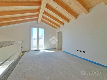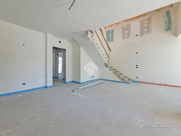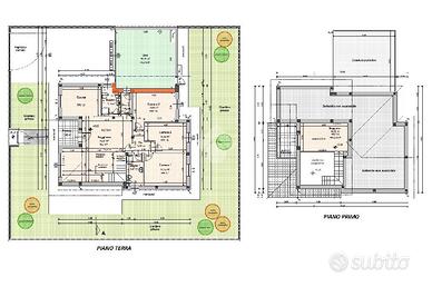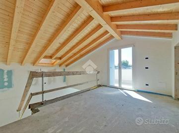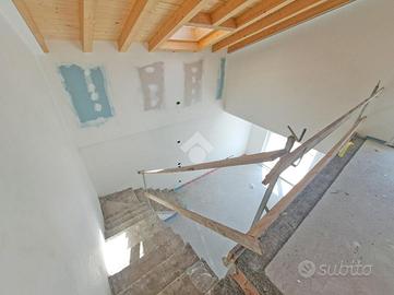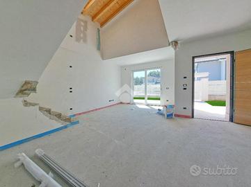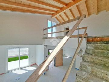 Gli ambienti principali della casa si sviluppano su unico livello e al piano terra, circondati da un gradevole e godibile giardino ed offrono tutto il comfort di un'abitazione dove è possibile accedere facilmente anche alle tre camere da letto e ai bagni senza spostarsi tra un piano e l'altro. L'ambiente al livello superiore, mansardato e avvalorato da un terrazzino, rappresenta infatti un locale jolly, da destinare ai più svariati utilizzi, ma che vanta un bellissimo effetto visivo grazie alla sua balconata con affaccio sul soggiorno.