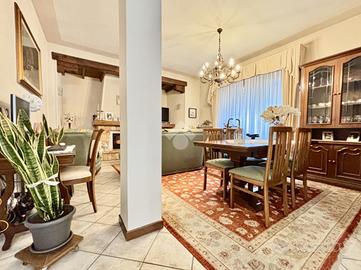 Al piano inferiore è ubicata la taverna, molto ben rifinita, attrezzata, ideale per grandi tavolate; pratica lavanderia, splendido bagno con doccia, cantina ed autorimessa doppia in larghezza con basculante elettrica.