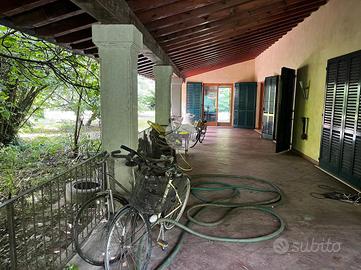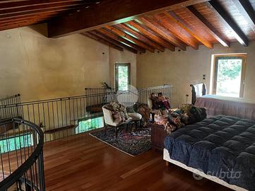 La villa si sviluppa su due livelli, collegati da una elegante scala in pietra. Al piano terra, troverai una prima camera da letto e due bagni finestrati con doccia. Al piano superiore, una seconda camera matrimoniale con travi a vista in legno e una terrazza che offre una vista mozzafiato sulla piscina e sull'ampio parco con laghetto.