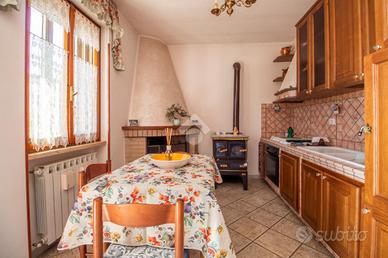 Al 1° piano accessibile da scala esterna, troviamo la cucina in muratura con camino, il soggiorno con balcone, 1 bagno con doccia e 2 camere matrimoniali.