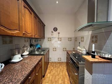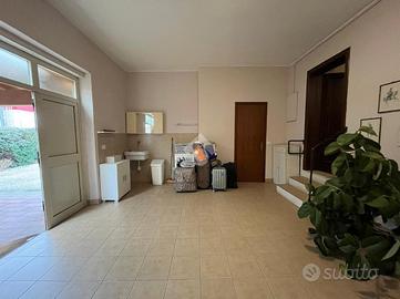 Restando al piano terra, si accede direttamente alla doppia autorimessa con angolo lavanderia e primo servizio con box doccia ristrutturato una ventina di anni fa.