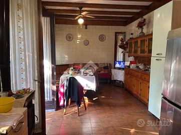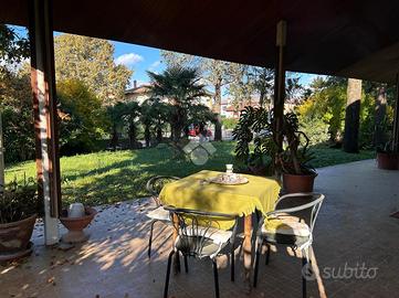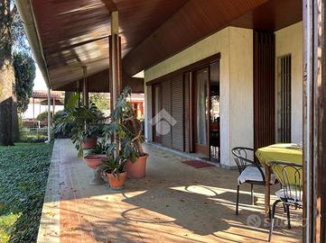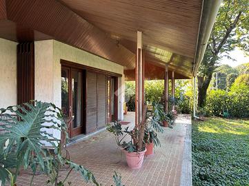 Entrando nella villa troviamo un ingresso che si apre su un ampio e luminoso soggiorno con camino, affacciato sul portico immerso nel verde. Conclude il piano rialzato la cucina ed un bagno di servizio.