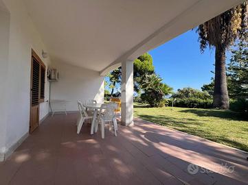 In una delle zone più esclusive di Scopello, Contrada Punta Pispisa, una villa indipendente con vista mare e giardino curato con prato all'inglese.