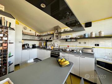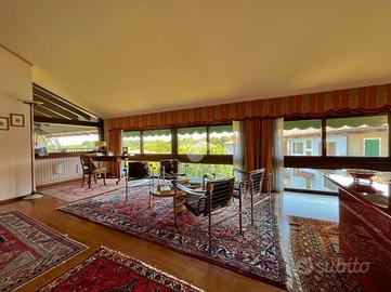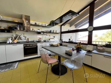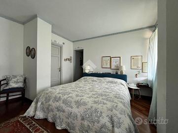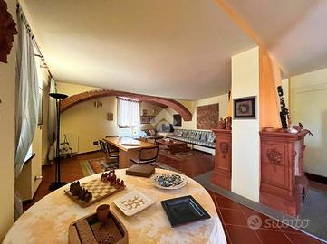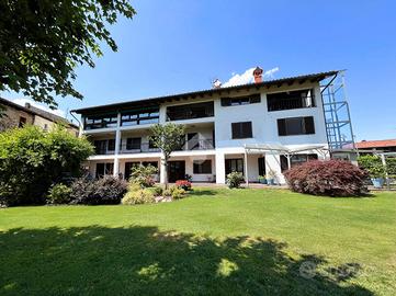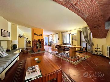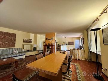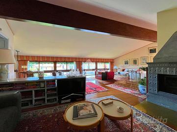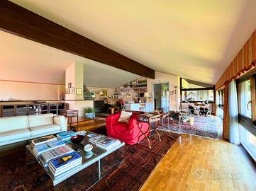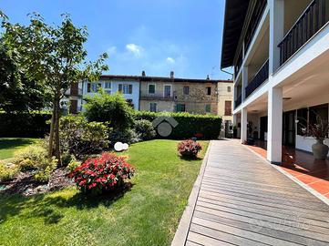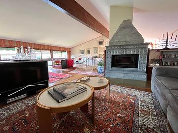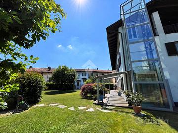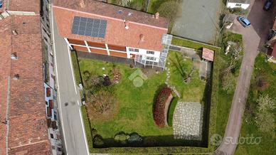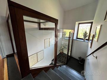 Ampia villa indipendente, con spazioso giardino privato, delimitato da recinzione con siepe, situata nel cuore del Canavese, nella tranquillità della frazione San Giovanni nel Comune di Castellamonte. Luogo adatto per unire benessere, vita all'aperto e desiderio di natura. A breve distanza il Golf Club San Giovanni dei Boschi, con piscina e ristorante aperti anche ai non soci. Immobile finemente ristrutturato, di 450 mq ca., con appartamento padronale disposto su due livelli, area fitness, ufficio ed ampio soggiorno estivo al piano terra. La proprietà è composta da due unità abitative, soluzione ideale sia per due nuclei familiari, per chi desidera coniugare abitazione e attività professionale/di rappresentanza oppure per investimento. Immerso in un ambiente naturale intatto, l'immobile si sviluppa su tre livelli e offre ambienti luminosi e ben distribuiti. Al piano terreno uno spazioso soggiorno estivo, impreziosito da un caminetto a doppia facciata, realizzato in terra rossa di Castellamonte da un noto artigiano locale, si affaccia direttamente sul giardino piantumato. Sempre al piano terreno, una sala fitness, un ambiente utilizzato quale disimpegno e due ulteriori locali con bagno adibiti ad ufficio. Al piano primo la zona notte, collegata con una scala interna al secondo piano, accoglie due camere da letto, due bagni ed una lavanderia/stireria. Completa il piano un appartamento indipendente, composto da soggiorno, cucina abitabile, camera matrimoniale e bagno. Il secondo piano dell'immobile si apre su un ampio e luminoso open-space, unico nel suo genere, disposto su piani sfalsati e vetrate a tutta altezza, in cui trovano spazio la zona pranzo, un accogliente angolo lettura/televisione e angoli conversazione. Completano il secondo piano un piccolo studio, un bagno, un locale dispensa e una cucina. A corredo della proprietà, box auto doppio, ascensore esterno panoramico, impianto fotovoltaico, impianto di irrigazione alimentata da pozzo, impianto di al