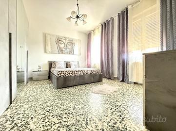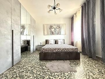 Appartamento al piano terra con doppio ingresso, cucina abitabile, soggiorno, tre camere da letto matrimoniali e bagno.