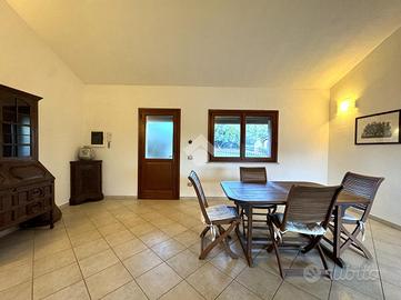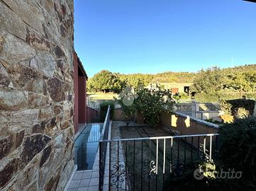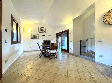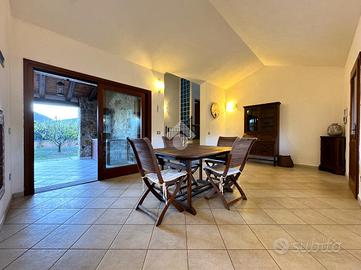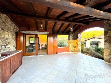 La proprietà, dotata di comodo accesso carraio, è circondata da un curato giardino privato su quattro lati di oltre 400 metri quadri ed è delimitata da un muro di cinta, le rifiniture prediligono i materiali tipici della zona quali pietra e graniti, che la impreziosiscono e la rendono armoniosa con il contesto naturale circostante.