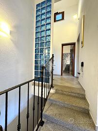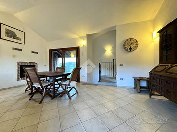 La villa è arricchita da ampie verande coperte panoramiche e si sviluppa su due livelli, piano terra e seminterrato, collegati tra di loro internamente, ma dotati anche di due ingressi separati che consentirebbero di sfruttarle come due unità immobiliari distinte. Il piano terra è costituito da un soggiorno con doppia esposizione e affaccio sul giardino e un disimpegno che conduce alla zona notte in cui trovano spazio due camere da letto e il bagno finestrato.