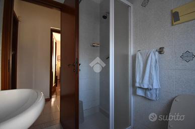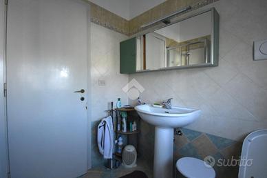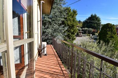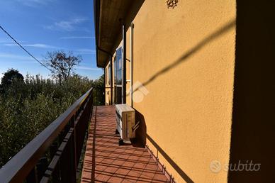 Salendo le scale si accede al primo piano della casa, anch'esso composto da un ampio e luminoso soggiorno con balcone che gode di una splendida vista, da una cucina separata ma abitabile, 2 camere da letto matrimoniali, una di esse con balcone e un bagno ristrutturato con doccia.