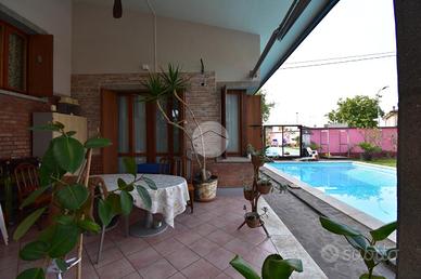 Nel cuore di Castiglione delle Stiviere, a pochi passi dal centro, si trova una villa singola di 330 mq, perfetta per chi cerca ampi spazi e comfort. Costruita nel 1968, questa residenza signorile offre cinque locali ben distribuiti, arricchiti da finiture prestigiose. La proprietà vanta una piscina privata, ideale per momenti di relax, e un'area benessere con sauna e bagno turco. Il termocamino a legna aggiunge un tocco di calore e atmosfera agli ambienti. Per chi ama ricevere ospiti, è disponibile un appartamento indipendente, garantendo privacy e comodità. Il porticato con barbecue è perfetto per cene all'aperto, mentre il doppio ingresso carraio facilita l'accesso e il parcheggio. Un sistema di allarme assicura tranquillità e sicurezza. Questa villa rappresenta un'opportunità unica per vivere in un contesto esclusivo, senza rinunciare alla vicinanza ai servizi del centro.