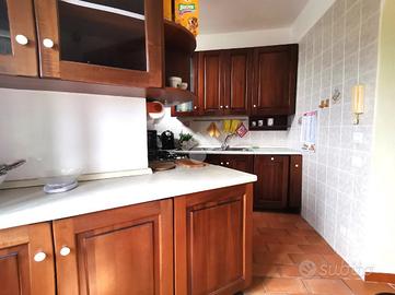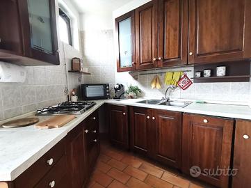 Al piano terra troviamo una camera, bagno con box doccia e ripostiglio. Al primo piano troviamo cucina con salottino, una camera, ampio bagno con box doccia e lavanderia e ampi abalconata. Proseguendo al piano superiore troviamo una soffitta abitabile mansardata con finestre e terrazzino.