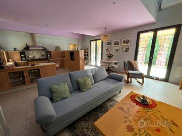 Nel comune di Cavenago di Brianza, proponiamo una villa singola con giardino sui 4 lati, unico livello, edificata nel 2017. Composta da soggiorno open space, cucina aperta con isola, 3 camere matrimoniali, cabina armadio, 3 bagni e terrazzo. La proprietà si sviluppa principalmente sul piano terra e comprende quattro locali ben distribuiti, ideali per soddisfare le esigenze di una famiglia. Gli spazi interni sono stati progettati per garantire comfort e praticità, con finiture moderne che esaltano l'eleganza della struttura. La posizione della villa, assicura una maggiore privacy e un'ottima esposizione alla luce naturale, trovandosi alla fine di una via a fondo chiuso. Questa soluzione rappresenta un'opportunità unica per chi desidera vivere in un contesto tranquillo, senza rinunciare alla vicinanza ai principali servizi e collegamenti della zona. la soluzione dispone di riscaldamento a pavimento, pannelli solari e fotovoltaici, caldaia a condensazione, infissi in triplo vetro alluminio, impianto di climatizzazione.