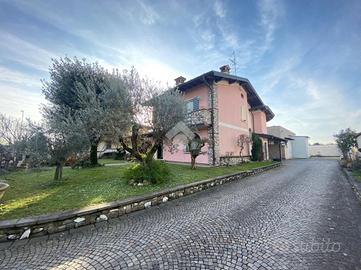 In zona residenziale/artigianale di Bornato, proponiamo importante villa singola, impreziosita dagli ampi spazi e circondata da verde esclusivo, con annesso capannone di circa 300 mq ed altezza di circa 5,5 m.