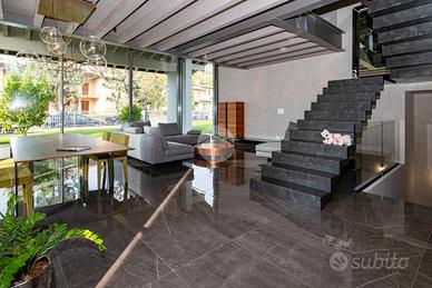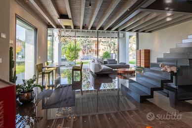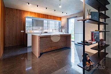 CAZZAGO SAN MARTINO - Elegante residenza di design, unica nel suo genere, completamente ristrutturata nel 2021, situata nella tranquilla frazione di Bornato. Inserita in un lotto di circa 1.300 mq, la proprietà si sviluppa su più livelli: