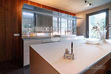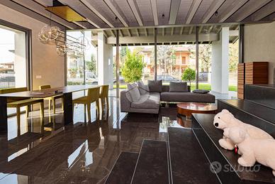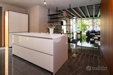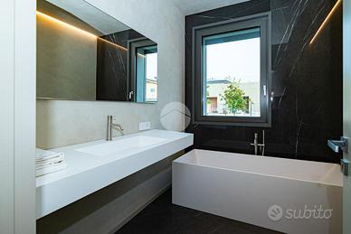 Piano sottostrada - 110 mq: ampio openspace adibito a soggiorno con cucina a vista, utilizzato come "taverna", con ampia vetrata. Completano il piano cabina armadio, lavanderia con sanitari e vano tecnico. Accesso diretto al box doppio in larghezza di circa 56 mq, dotato di basculante elettrica.