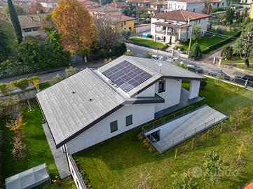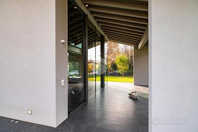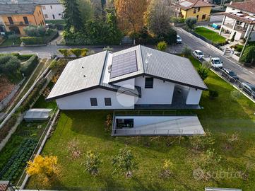 La casa si distingue per finiture di pregio e tecnologie all'avanguardia, tra cui serramenti di alta qualità con triplo vetro e isolamento termico di eccellente livello, pompa di calore per riscaldamento e acqua calda, impianto fotovoltaico, sistema domotico completo per il controllo di luci, tapparelle e climatizzazione, videocitofono, predisposizione per allarme e videosorveglianza, e pavimenti e rivestimenti di alto livello.