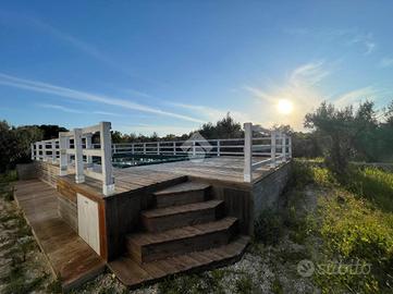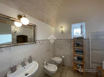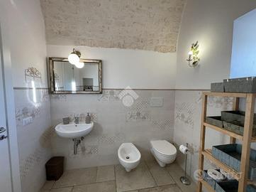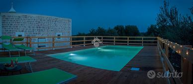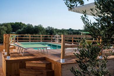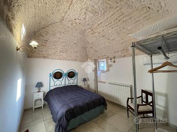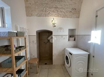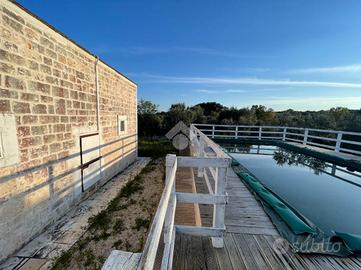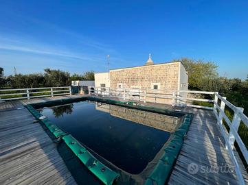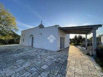 TRULLO E LAMIA CON PISCINA - Ceglie Messapica Nelle suggestive campagne tra Ceglie Messapica e Martina Franca, proponiamo in vendita un'affascinante proprietà composta da trullo e lamia finemente ristrutturati, per una superficie complessiva di circa 131 mq, immersa in circa 3 ettari di terreno. L'ingresso si apre su un'ampia e luminosa zona living in open space, impreziosita da una grande vetrata che valorizza la luce naturale e crea una perfetta continuità con l'esterno, permettendo l'accesso diretto al piazzale e all'area piscina. Dalla zona giorno si accede inoltre ad una caratteristica alcova che ospita la cucina, perfettamente integrata nello stile della struttura.La zona notte è composta da due spaziose camere da letto, una matrimoniale ed una doppia, entrambe finestrate, e da un bagno con doccia incastonata in una suggestiva nicchia e finestra.L'immobile conserva tutto il fascino autentico della tradizione pugliese, con le volte della lamia e il cono del trullo riportati a pietra e valorizzati da una ristrutturazione accurata e di qualità.All'esterno, la proprietà è circondata da un ampio piazzale nella parte antistante, mentre lateralmente troviamo una comoda veranda coperta con plexiglass antipioggia, ideale come zona relax o area pranzo all'aperto.Elemento distintivo della proprietà è la splendida piscina sopraelevata in legno situata nella parte retrostante: grazie alla posizione collinare e all'altezza della struttura, offre un suggestivo effetto "a sfioro" sulla distesa di ulivi e alberi da frutto (circa 600 ulivi misti ad alberi da frutto come mandorli e fichi), regalando un panorama unico e riservato.Completano la proprietà: ampio deposito, impianto di allarme, grate di sicurezza, doccia esterna, climatizzatori nelle camere da letto, termosifoni e predisposizione per stufa, sanitari sospesi e termoarredo in bagno, cisterna e fossa Imhoff, vespaio igloo per isolamento da umidità e condensa, terreno biologicoLa proprietà è situata in posizione coll..