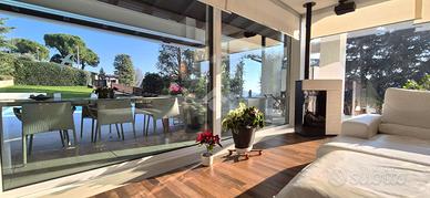 Nel comune di Cenate Sopra, proponiamo in vendita una villa singola di 650 mq, caratterizzata da un design signorile e da ottime finiture. La proprietà, recentemente ristrutturata, si sviluppa principalmente al piano terra e offre un ampio giardino con una piscina a sfioro, affiancata da un porticato abitabile ideale per momenti di relax all'aperto. Gli interni comprendono tre camere da letto, soggiorno luminoso caratterizzato da ampie vetrate,cucina separata e tre bagni. La zona mansardata e la taverna offrono spazi versatili per ogni esigenza. La villa è dotata di due box auto doppi e posti auto esterni, garantendo ampio spazio per il parcheggio. La presenza di un sistema di domotica e pannelli solari assicura comfort e sostenibilità. Due balconi completano la proprietà, offrendo ulteriori spazi esterni.