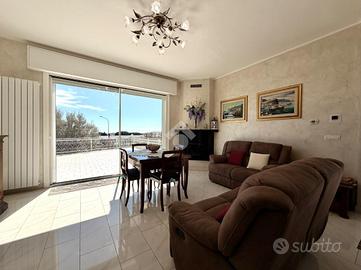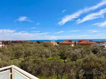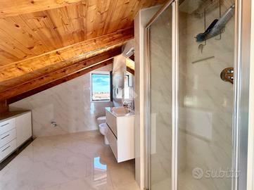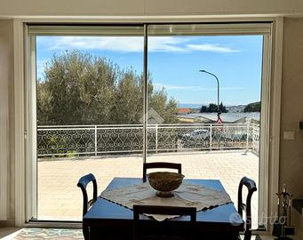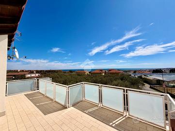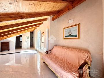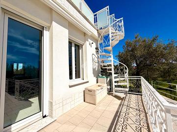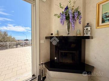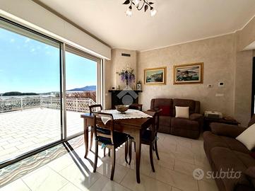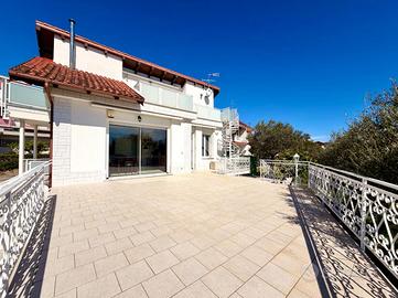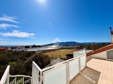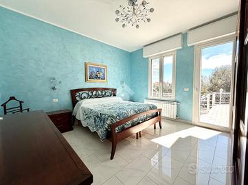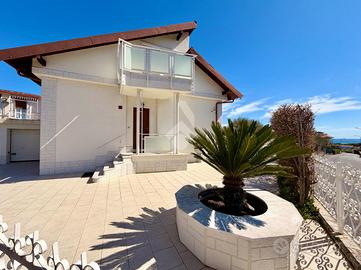In zona dominante con splendida esposizione al sole e VISTA MARE PANORAMICA, Villa singola di pregio, interamente ristrutturata nel 2018 con materiali ricercati, con generoso terrazzo. L'immobile si sviluppa su più livelli e offre ampi spazi abitativi. Al suo interno, la villa ci accoglie, al piano terreno, in un ampia zona giorno con cucina a vista e sfogo tramite la vetrata scorrevole sul terrazzo, tramite il disimpegno si accede al primo bagno finestrato con doccia, alla prima camera matrimoniale ed alla seconda camera matrimoniale con il bagno privato arricchito dalla doccia multifunzione con sauna e bagno turco. Al piano primo troviamo il comodo locale mansardato composto da un locale funzionale a soggiorno/ camera da letto con sfogo sul terrazzo panoramico, la zona cucina ed il bagno finestrato con doccia. Completano la proprietà la spaziosa autorimessa di circa 20 metri, i tre posti auto interni è i 400 metri di terreno terrazzato, perfetto per chi ama vivere all'aperto senza l'impegno della gestione delle aree verdi. La villa è dotata di tre tipologie di riscaldamento il primario a pompe di calore caldo/freddo con controllo da remoto, il secondario tramite termo-camino a legna ed in ultimo il classico riscaldamento a radiatori con caldaia metano a condensazione. Fornito di domotica da remoto e di sistema di video sorveglianza. Questa residenza rappresenta un'opportunità unica per chi cerca una soluzione abitativa esclusiva in una posizione privilegiata.