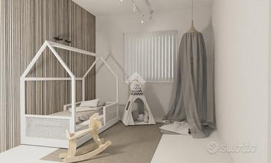 L'immobile, dallo stile moderno ed elegante, viene edificato tutto fuori-terra e gode di un ampio box doppio in larghezza adiacente all'abitazione e direttamente collegato anche dall'interno.