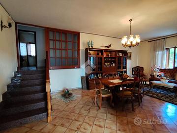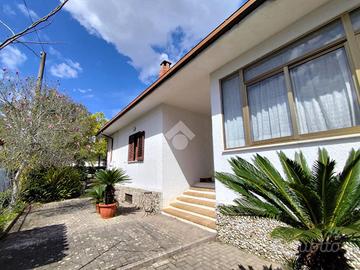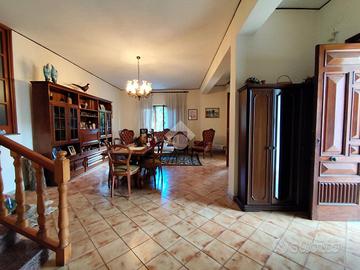 Villa caratteristica in stile vintage in buono stato di manutenzione, disposta su un solo livello con zona notte al piano ammezzato. Ingresso ampio salone, cucina, tinello e bagno in zona notte; tre camere da letto con bagno in zona notte; ampio locale autorimessa, cantina, cortile e giardino circostanti il fabbricato e terreno retrostante di ulteriori 600mq. INTERESSANTE.
