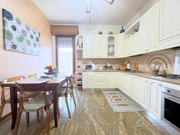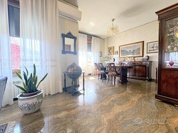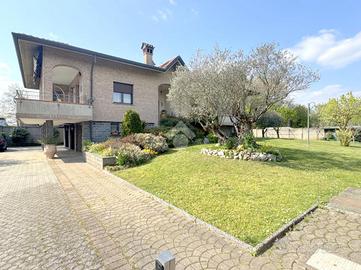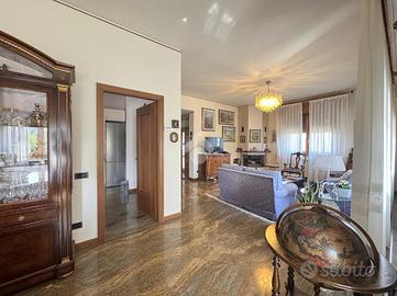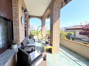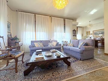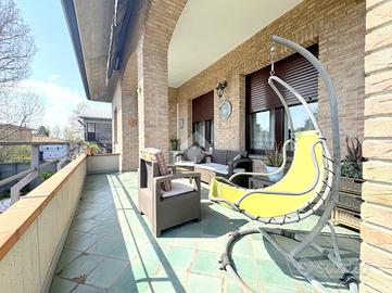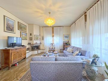 La proprietà si sviluppa su una superficie di circa 190 mq e accoglie una zona giorno di grande impatto, ampia ben 60 mq, dove l'ingresso principale introduce in un elegante soggiorno doppio, articolato in zona living con camino e zona pranzo affacciata su un terrazzo coperto, la cucina abitabile, separata e funzionale, è dotata di ampi piani di lavoro e spazi ben organizzati.