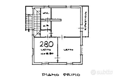 Tramite scala interna si accede al primo piano, dove troviamo la zona notte con un altro bagno finestrato, due camere matrimoniali di cui una servita da balcone verandato ed una camera singola.