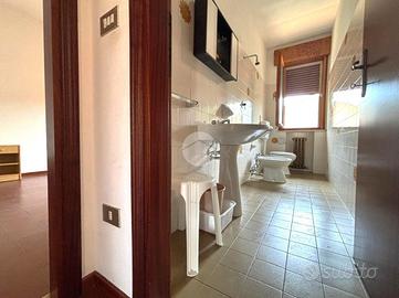 Dal secondo ingresso, grazie ad una scala interna, accediamo al piano superiore dove troviamo la seconda soluzione, composta da un soggiorno, cucina, tre camere da letto, due bagni e tre balconi.
