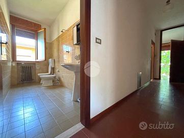 Al piano terra sono presenti due ingressi. Dal primo ingresso accediamo ad una soluzione composta da soggiorno, cucina, tre camere da letto e due bagni.