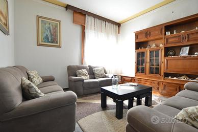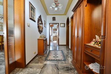 L'immobile, sviluppato in due livelli, presenta al piano terra una taverna con caminetto, una cucina, due magazzini, un ripostiglio, un bagno con doccia, una lavanderia e un garage. Passando al primo piano, con accesso sia interno che esterno, troviamo un comodo ingresso che divide la zona giorno, composta da cucina e soggiorno separati, dalla zona notte, dove sono presenti quattro camere da letto, tre matrimoniali e una doppia, e un bagno con vasca e doccia.