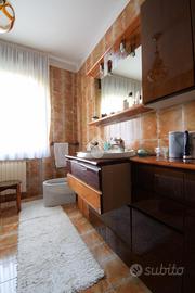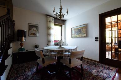 La villa è situata in posizione dominante e privilegiata in quanto gode di tranquillità senza rinunciare alla vicinanza con i servizi del centro paese come bar, alimentari, negozi, poste, asl, ristoranti, supermercati e autostazione. La casa si presenta in ottimo stato di conservazione e vanta finiture di pregio; l'esposizione a sud le garantisce il sole diretto durante tutto il corso della giornata. Il salone è caratterizzato da mattoni rossi a vista e dal camino a legna. La sala da pranzo ha doppia esposizione sud-ovest per garantire luminosità durante tutta la giornata. La cucina abitabile è su misura e concede l'accesso al terrazzo esterno. Il bagno al piano terra è finestrato e dotato di vasca. Le tre camere da letto matrimoniali sono tutte di generose dimensioni e ciascuna è servita da bagno finestrato privato. Le due camere da letto doppie sono mansardate e ospitano diversi armadi su misura. Al piano seminterrato è presente una caratteristica taverna con angolo cottura e camino a legna. Sono presenti due cantine, una delle quali è dotata di bagno di servizio. Il box auto è di circa 170 mq e può contenere almeno cinque macchine. Il riscaldamento è autonomo a metano con caldaia sostituita di recente e sistema di pannelli solari con puffer d'accumulo per l'acqua calda. Completa la proprietà il giardino che circonda la totalità della casa.