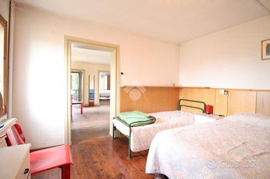 L'abitazione al piano terra è composta da soggiorno, cucina separata abitabile, tre stanze, un bagno di servizio e la cantina. Al piano superiore troviamo una sala, quattro camere matrimoniali, un secondo bagno e tramite la scala si accede alla soffitta.