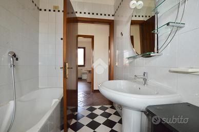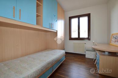 La zona notte è composta da tre camere da letto: una matrimoniale con bagno privato con doccia, una doppia e una camera singola. Completa il piano un bagno finestrato con vasca.