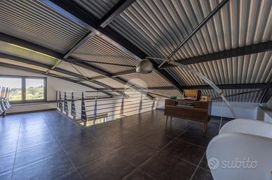 Un'incantevole zona soppalcata ospita una terza camera matrimoniale con cabina armadio e bagno privato, arricchito da una vasca, ideale per momenti di puro relax. In questa zona troviamo anche un ampio spazio che si presta a diverse soluzioni d'arredo.