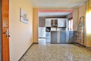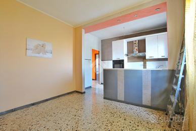 - Cucina: circa 18 mq, composta da un locale unico suddiviso da un muretto che definisce chiaramente l'area cottura e la zona pranzo;