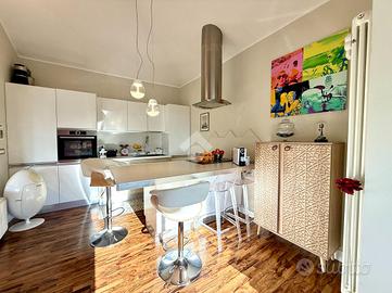 La proprietà, di oltre 200 mq, è suddivisa in due appartamenti indipendenti collegati da una scala interna.