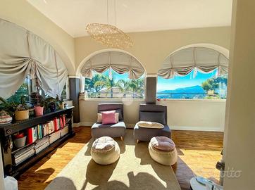 * Primo Piano: un salone spettacolare con terrazza fronte mare, cucina e zona pranzo con grandi vetrate ad arco, una camera matrimoniale con cabina armadi e bagno. Da ogni ambiente la vista è un vero spettacolo naturale.