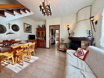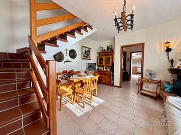 La casa si sviluppa su due livelli e presenta al piano terra un accogliente soggiorno con camino, una cucina separata e un bagno con finestra, mentre al piano primo trovano spazio due ampie camere da letto, un secondo bagno con doccia e finestra e un balcone con affaccio panoramico. Gli ambienti risultano ben distribuiti e facilmente personalizzabili in base alle proprie esigenze.