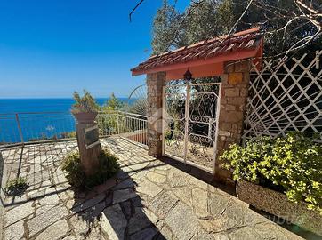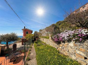 Villetta indipendente con vista mare a 180°, terrazzo panoramico e giardino a Cipressa Nel suggestivo contesto di Cipressa proponiamo in vendita una villetta indipendente con una straordinaria vista mare a 180°, una proprietà capace di offrire luminosità, privacy e un panorama aperto che accompagna ogni momento della giornata. La casa si sviluppa su due livelli e presenta al piano terra un accogliente soggiorno con camino, una cucina separata e un bagno con finestra, mentre al piano primo trovano spazio due ampie camere da letto, un secondo bagno con doccia e finestra e un balcone con affaccio panoramico. Gli ambienti risultano ben distribuiti e facilmente personalizzabili in base alle proprie esigenze. Il vero valore aggiunto della proprietà è rappresentato dall'ampio terrazzo panoramico, ideale per pranzi all'aperto, momenti di relax e cene al tramonto, oltre al giardino privato che valorizza ulteriormente la posizione dominante e la vista aperta sul mare. La facciata è stata recentemente rifatta, mentre gli interni necessitano di alcuni interventi di ristrutturazione, offrendo così l'opportunità di creare una casa su misura, perfetta sia come abitazione principale sia come casa vacanze. E' possibile creare un accesso carraio direttamente dalla strada principale, elemento raro e particolarmente apprezzato in questa tipologia di immobili. Una soluzione ideale per una famiglia non numerosa o per chi desidera vivere il mare in un contesto tranquillo e panoramico.