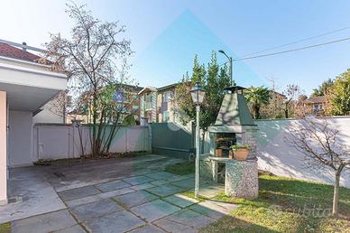 CIRIE' - ZONA PARCO - Nel cuore della prestigiosa e tranquillissima zona Parco, a 50 metri dalla caserma dei Carabinieri e a 6 minuti a piedi dalla stazione e dal centro pedonale della Città, disponiamo di meravigliosa villa indipendente su quattro lati, adatta a tre famiglie si tratta di un immobile unico nel panorama immobiliare del mercato cittadino. Dalla cura dei dettagli si denota l'ottima qualità dei materiali impiegati nella costruzione e nella ristrutturazione, quindi un immobile di sicuro prestigio. Il cancelletto in ferro battuto si apre sul parco privato ottimamente curato e piantumato dove si trova un barbecue, un forno a legna e una serra. Il vialetto in pietra di luserna ci conduce all'ingresso. Nel giardino insiste un pozzo utilizzato per la bagnatura del prato con irrigazione automatica, grazie alla sua profondità circa mq 40 e alle sorgenti naturali che nascono in profondità nel sottosuolo. Nel parco privato insistono inoltre il box auto doppio dotato di allarme, una cucina estiva con bagno e un deposito attrezzi. Il portoncino blindato si apre sull'ingresso, che grazie alla maestosa scala lavorata a testa di toro in granito sardo e mancorrente in legno di rovere lavorato a meno, disimpegna ottimamente le tre unità abitative rendendo completamente indipendenti gli alloggi. Al piano terra si trova la prima unità che si compone di ampio salone con la cucina abitabile per la zona giorno. Un grazioso terrazzo coperto con affaccio sul parco completa questa prima parte di casa. La zona notte è formata da due camere da letto matrimoniali. Il ripostiglio e il bagno completano il piano. Proseguendo la visita si giunge al primo piano dove è ubicato il secondo alloggio di uguale disposizione, esposizione e metratura. Anch'esso con terrazzo coperto. Le parti interne sono state completamente sostituite tutti gli infissi sono dotati di doppio vetro. Volendo il secondo alloggio potrebbe essere abbinato come è attualmente con il terzo alloggio che risulta esser...