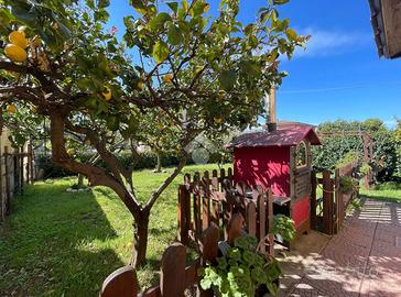 Attraversato il vialetto di ingresso, troviamo la prima abitazione al piano terra, composta da un ampio soggiorno con camino, cucina con sala da pranzo ed uscita sul giardino retrostante, due camere da letto, ripostiglio e 2 bagni di cui uno con doccia e vasca.