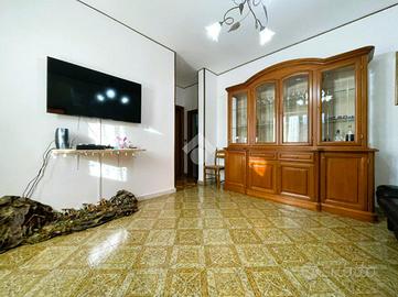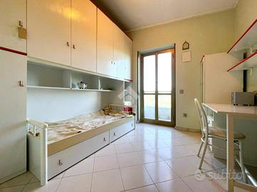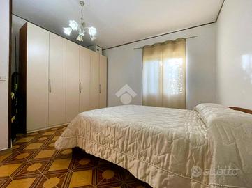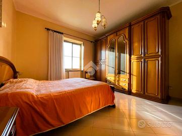 Al primo appartamento, posto al piano primo dell'edificio, vi si accede tramite una scala interna rivestita in marmo. Varcato il portoncino d'ingresso ad accoglierci troviamo il grande soggiorno completo di termo-camino a legna e balcone a livello. Tramite il corridoio arriviamo alla cucina separata e abitabile, anch'essa con uscita sul balcone privato. La zona living presenta inoltre un ampio terrazzo mentre nella zona notte troviamo la camera matrimoniale, le due camerette con uscita sul balcone e il bagno finestrato con vasca in muratura.