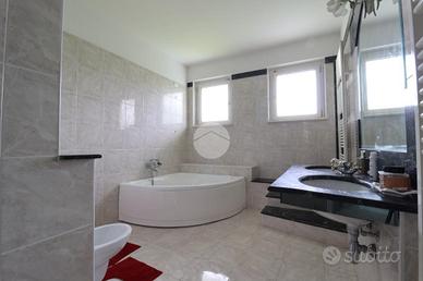 Situata a Città Sant'Angelo, in una delle zone più richieste e strategiche, a pochi passi dal centro commerciale Pescara Nord e dalla clinica Villa Serena, proponiamo in vendita una prestigiosa villa singola con piscina, ideale per chi è alla ricerca di una soluzione esclusiva e versatile. L'abitazione si sviluppa su cinque livelli e si distingue per l'ampiezza e la funzionalità degli spazi. Al piano terra si apre una luminosa zona giorno composta da un ampio soggiorno, una sala da pranzo e una cucina abitabile, ambienti pensati per garantire comfort e convivialità. Salendo al piano terra rialzato si accede alla prima zona notte, caratterizzata da quattro camere matrimoniali, di cui una con bagno privato, oltre a un ulteriore bagno finestrato. Il primo piano ospita un secondo appartamento attualmente indipendente, composto da una spaziosa zona giorno con angolo cottura e accesso a due terrazzi panoramici con vista aperta e affaccio sulla piscina. Attraverso una breve rampa di scale si raggiunge la zona notte, dove troviamo altre tre camere da letto, una con bagno privato, oltre a un secondo bagno a servizio del piano. Questo livello è accessibile sia internamente dall'abitazione principale sia tramite una comoda scala esterna con ingresso diretto dal terrazzo, offrendo così grande flessibilità d'uso. I livelli seminterrati sono destinati a garage e cantina e dispongono inoltre di un ulteriore bagno, rendendo gli spazi ancora più completi e funzionali. All'esterno, la proprietà è valorizzata da ampie aree pavimentate e da un curato giardino che circonda la villa, oltre alla presenza di due ingressi carrabili e uno pedonale. Questa soluzione rappresenta un'opportunità unica, perfetta sia per nuclei familiari numerosi sia per chi desidera investire in una struttura ricettiva come bed & breakfast, affittacamere o attività turistico-ricettiva, grazie agli spazi generosi e alla posizione strategica. Se per acquistare la tua nuova casa hai bisogno di vendere il tuo at